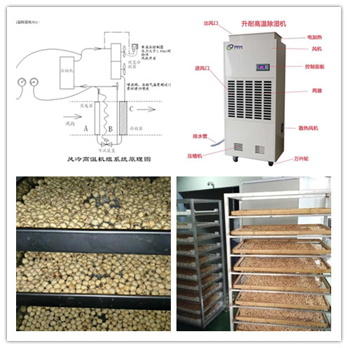 如果不排濕就算不會出現蒸煮現象,那么在烘房冷卻過程中,種子就會吸收里面的水汽,導致種子受潮,這樣在存放的時候就會出現發霉現象,導致種子發芽率下降。因為種子干燥好后,是不能立馬打開烘房的,需要花上一點時間讓烘房自然冷卻到常溫才能入庫收藏,如果一下打開烘房讓烘房的溫度跟室外溫度一樣,就會因為溫差導致種子的胚芽受損,降低發芽率。所以使用除濕機及時排濕,是種子烘干的好選擇。